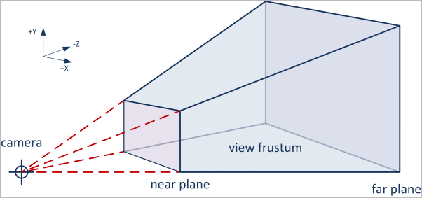 카메라의 위치와 근평면 사이(0 < z < near)에 오브젝트가 배치되면, 해당 오브젝트는 카메라에 포착되지 않아 시야에 보이지 않는다.