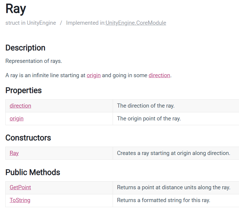 Ray API : https://docs.unity3d.com/6000.0/Documentation/ScriptReference/Ray.html